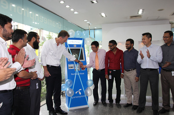 Grameenphone, the leading telecommunication service provider in Bangladesh, launched the e-rechage self-service mobile recharge kiosk at Grameenphone Center in Gulshan for its subscribers on July 25th, 2013. Chief Marketing Officer of Grameenphone, Allan Bonke and Vice President of Eastcompeace Technology Co., Ltd., Daniel Hu inaugurated the KIOSK at Grameenphone Center at Gulshan.